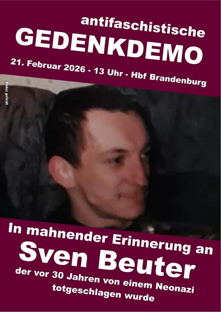 Gemeinsam wollen wir am Samstag, den 21. Februar, auf die Straße gehen, um an Sven Beuter zu erinnern, zu mahnen, wohin rechtes Gedankengut führt und um den Opfern rechter und neonazistischer Gewalt zu gedenken. Niemand ist vergessen! Bringt gerne Blumen mit.